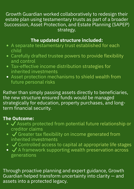 With property values and household wealth increasing in Australia, more estates now exceed $500,000. In these cases, a testamentary trust can add significant value by providing long-term control, flexibility, and tax-effective distribution of assets across generations.